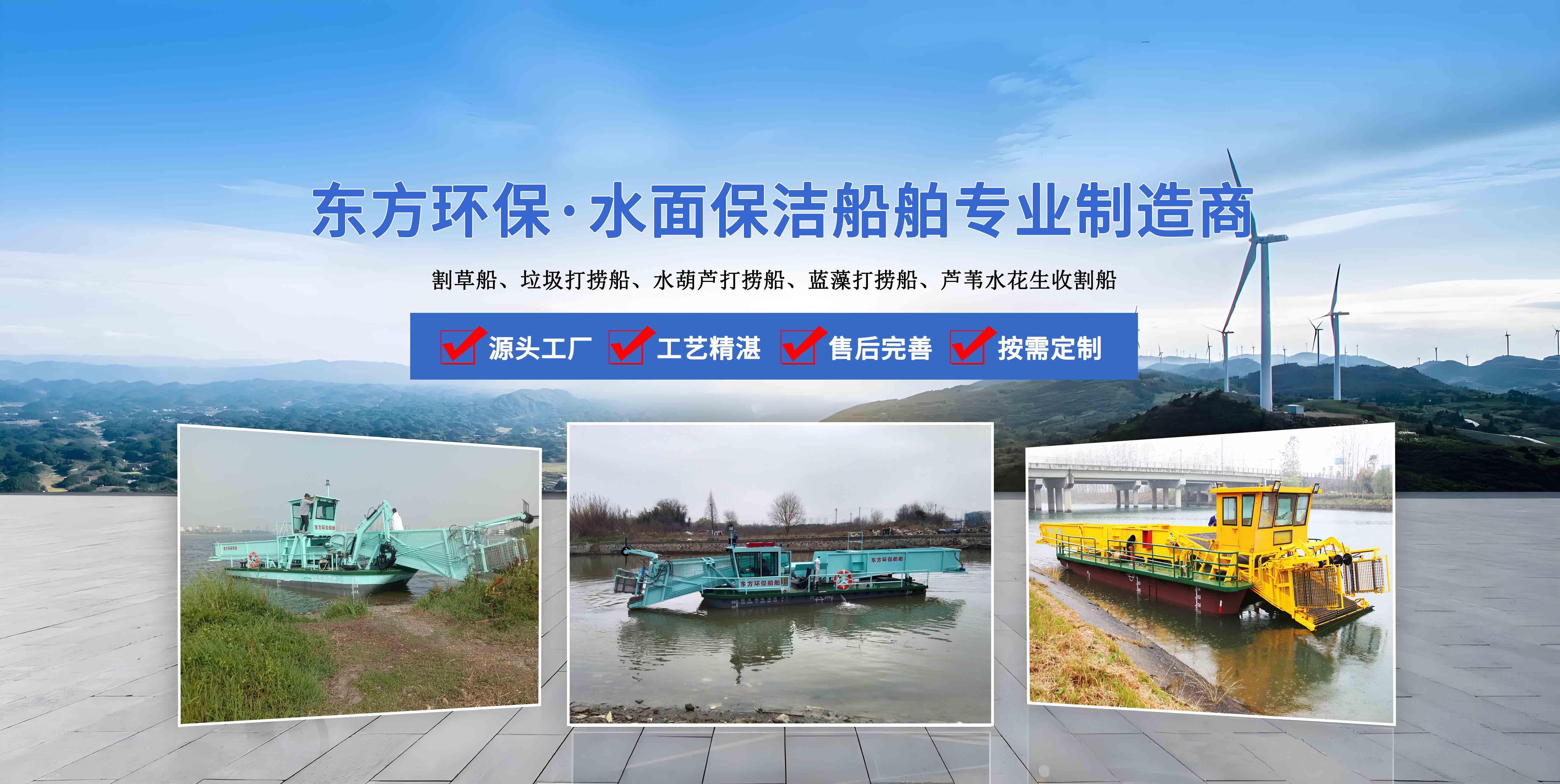 青州市東方環(huán)保機(jī)械制造有限公司位于山東省青州市,地理位置得天獨(dú)厚,是水面保潔船、水草收割船、、清漂船、滸苔打撈船、藍(lán)藻打撈船等水面船體的專業(yè)制造銷售廠家, 公司成立于2006年,公司先后與山東省黃河造船廠、中船重工702研究所、青島海洋大學(xué)、渤海船舶職業(yè)學(xué)院等機(jī)構(gòu)建立了長(zhǎng)期合作關(guān)系.。
